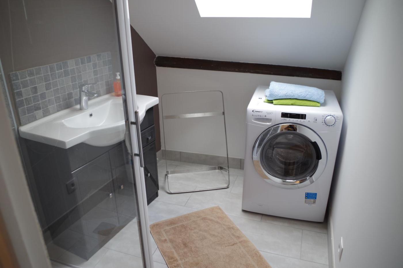 Appartement avec Douche. Guests can make meals in the kitchen that has a stovetop, a refrigerator, kitchenware and a microwave. This apartment has a coffee machine, a dining area and a flat-screen TV. The unit has 1 bed. ;