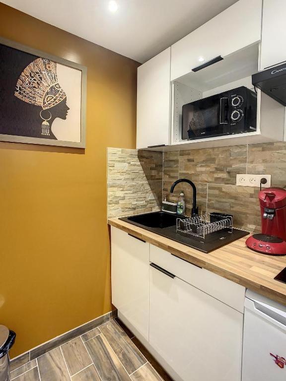 Appartement 1 Chambre. The apartment has 1 bedroom and 1 bathroom with a hairdryer and free toiletries. In the kitchen, guests will find a stovetop, a refrigerator, kitchenware and a microwave. The apartment features soundproof walls, a tea and coffee maker, a tiled floor, heating, as well as a flat-screen TV. The unit has 1 bed.