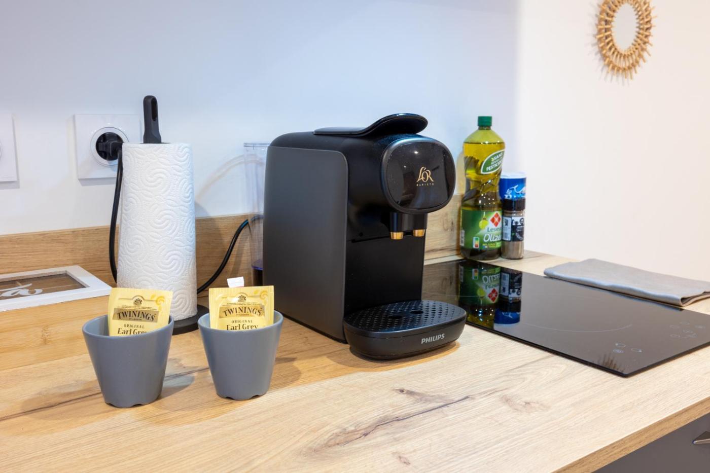 Appartement 1 Chambre. Featuring a private entrance, this apartment consists of 1 living room, 1 separate bedroom and 1 bathroom with a shower and a hairdryer. The well-fitted kitchen features a stovetop, a refrigerator, kitchenware and a microwave. Boasting a patio, this apartment also provides soundproof walls, a tea and coffee maker and a flat-screen TV with streaming services. The unit offers 2 beds.