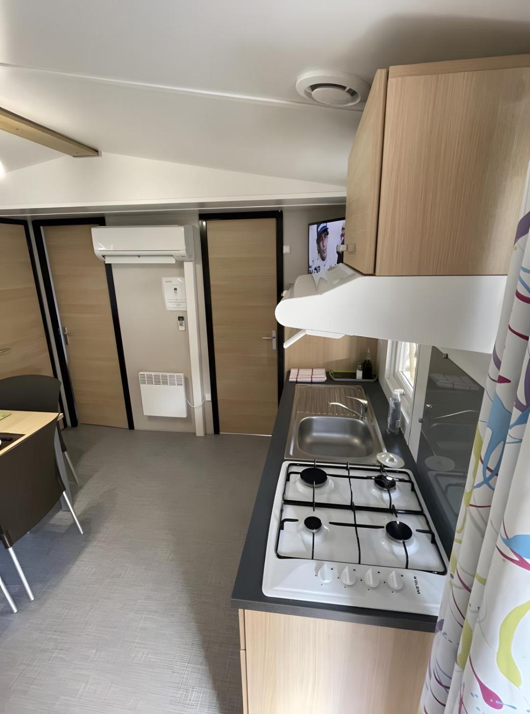 Mobile Home. Boasting a private entrance, this air-conditioned mobile home includes 3 bedrooms and 1 bathroom with a hairdryer. In the kitchen, guests will find kitchenware, a microwave and a toaster. This mobile home has a coffee machine, a barbecue, a TV with satellite channels and a patio. The unit has 5 beds.