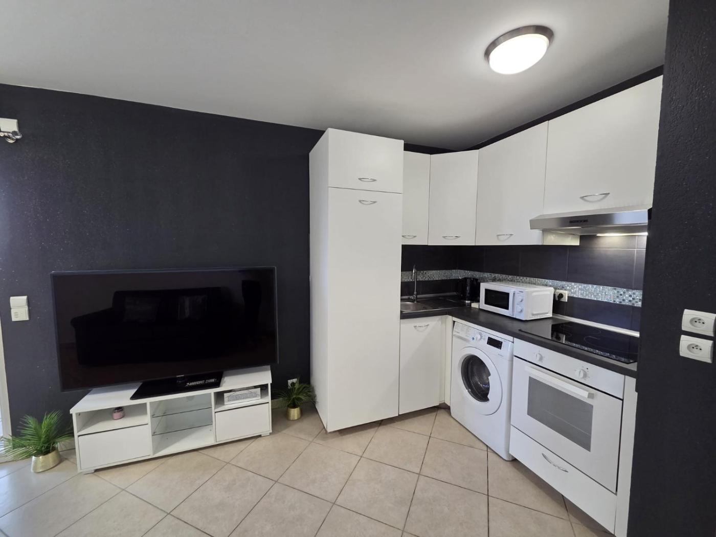 Appartement 1 Chambre. Boasting a private entrance, this air-conditioned apartment comes with 1 living room, 1 separate bedroom and 1 bathroom with a bath and a hairdryer. In the kitchen, guests will find a stovetop, a refrigerator, an oven and a microwave. Featuring a terrace with sea views, this apartment also features a washing machine and a flat-screen TV with streaming services. The unit has 3 beds.