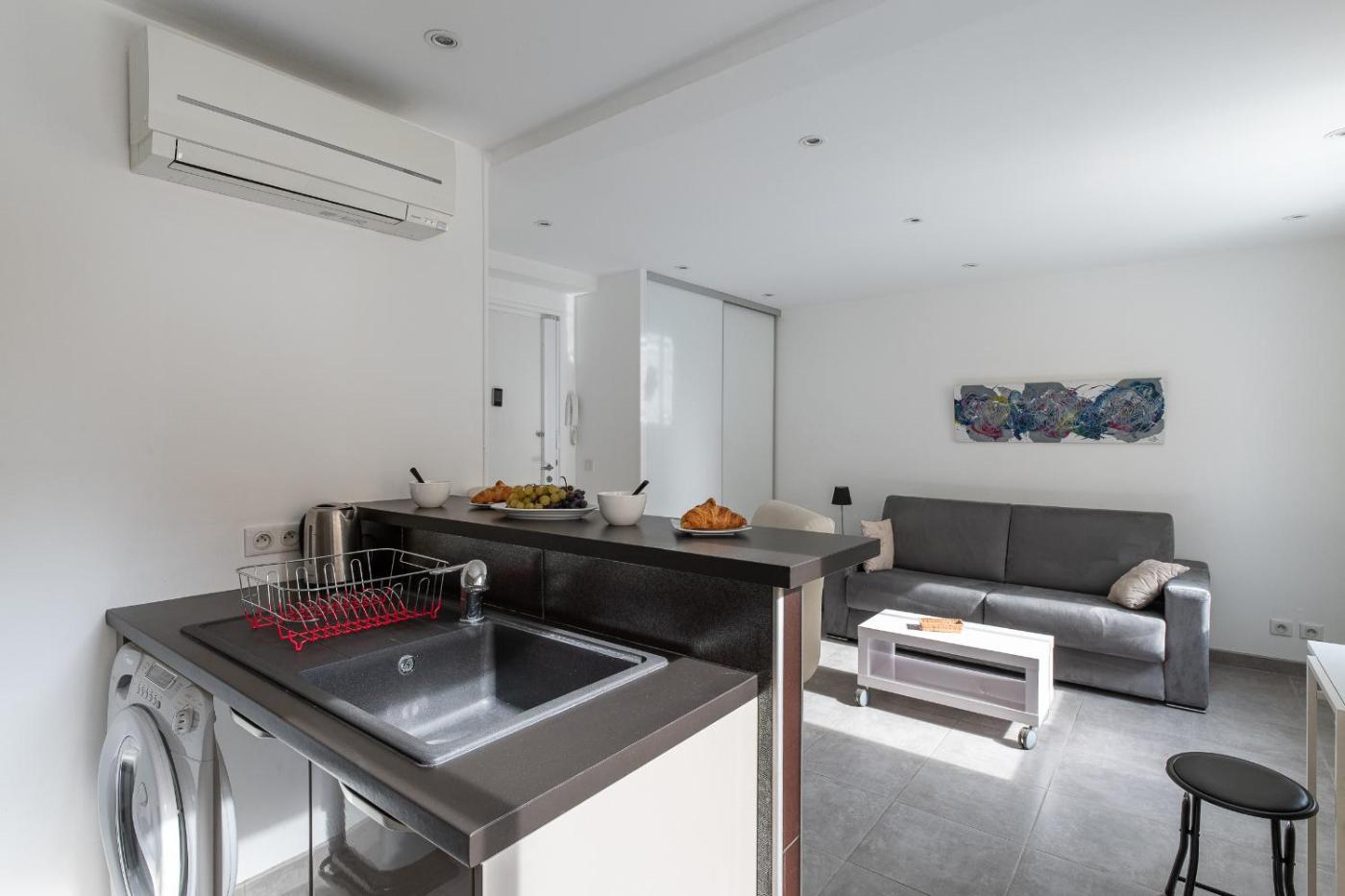 Appartement 1 Chambre. The apartments kitchen, which has a refrigerator and a microwave, is available for cooking and storing food. This apartment is air-conditioned and features a flat-screen TV, a washing machine, a tea and coffee maker and heating. The unit offers 1 bed.