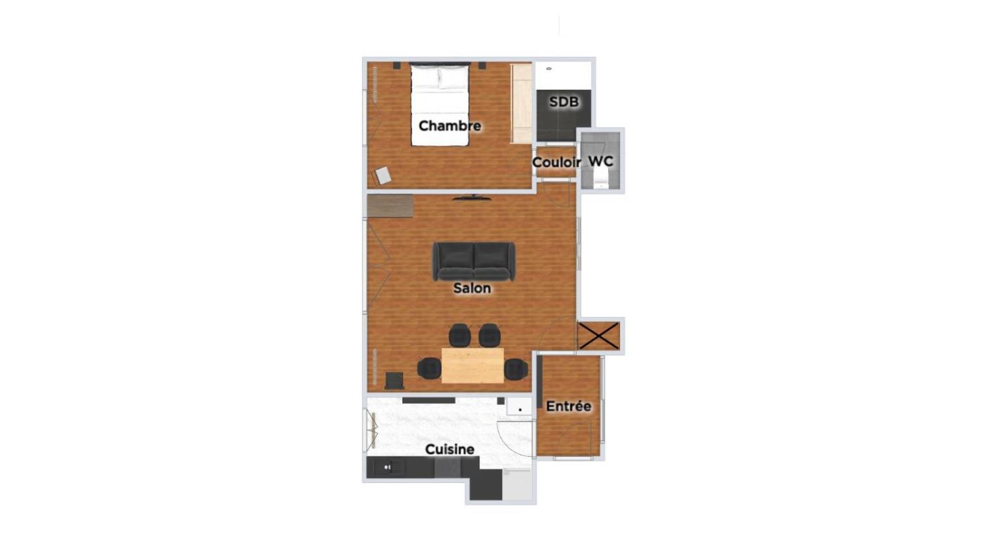 Appartement 1 Chambre. This apartment features 1 living room, 1 separate bedroom and 1 bathroom with a shower and free toiletries. Guests can make meals in the kitchen that has a stovetop, a refrigerator, a dishwasher and kitchenware. This apartment has a washing machine, a tea and coffee maker, flat-screen TV with streaming services, as well as chocolate for guests. The unit has 2 beds.