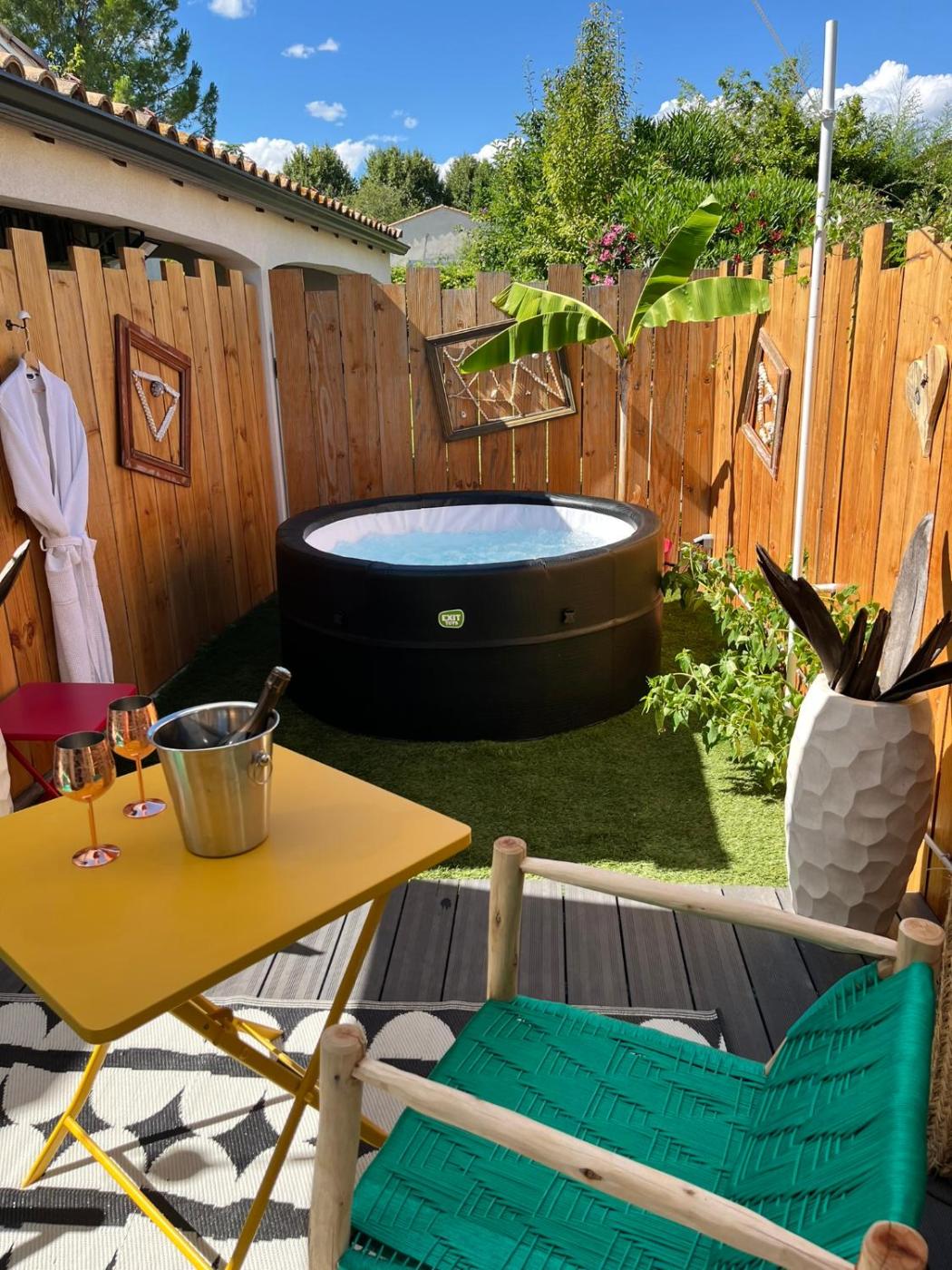 Chambre Double avec Baignoire Spa. The hot tub and spa bath are the special features of this double room. Guests will find a refrigerator, kitchenware, an oven and a microwave in the fully equipped kitchenette. The double room also offers a barbecue. The spacious double room provides air conditioning, a private entrance, a terrace with garden views as well as a private bathroom featuring a walk-in shower. The unit offers 1 bed.