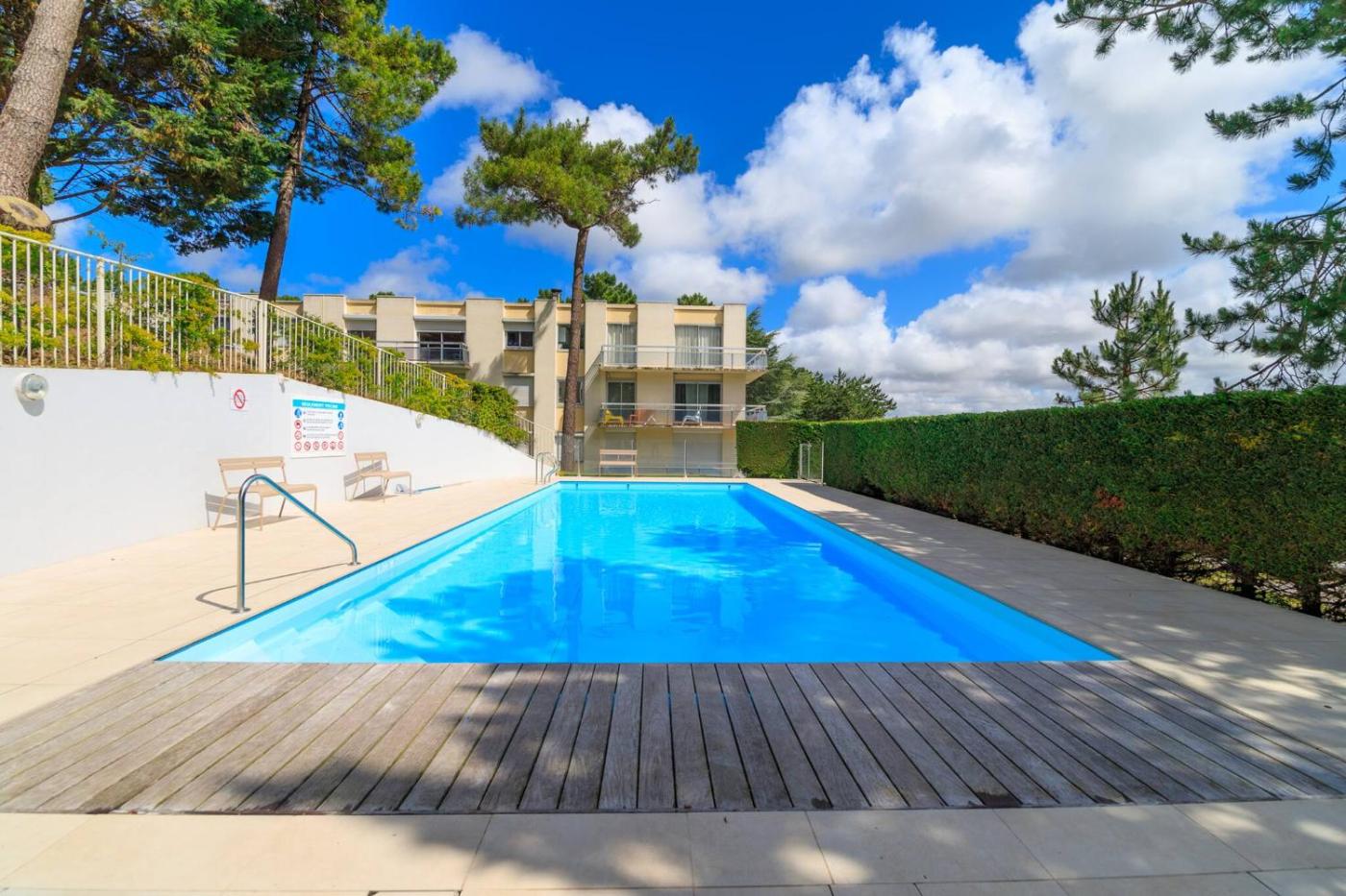 Appartement rénové à Stella-Plage avec piscine chauffée, parking privé gratuit, TV grand écran, boulodrome, à 2km de la plage