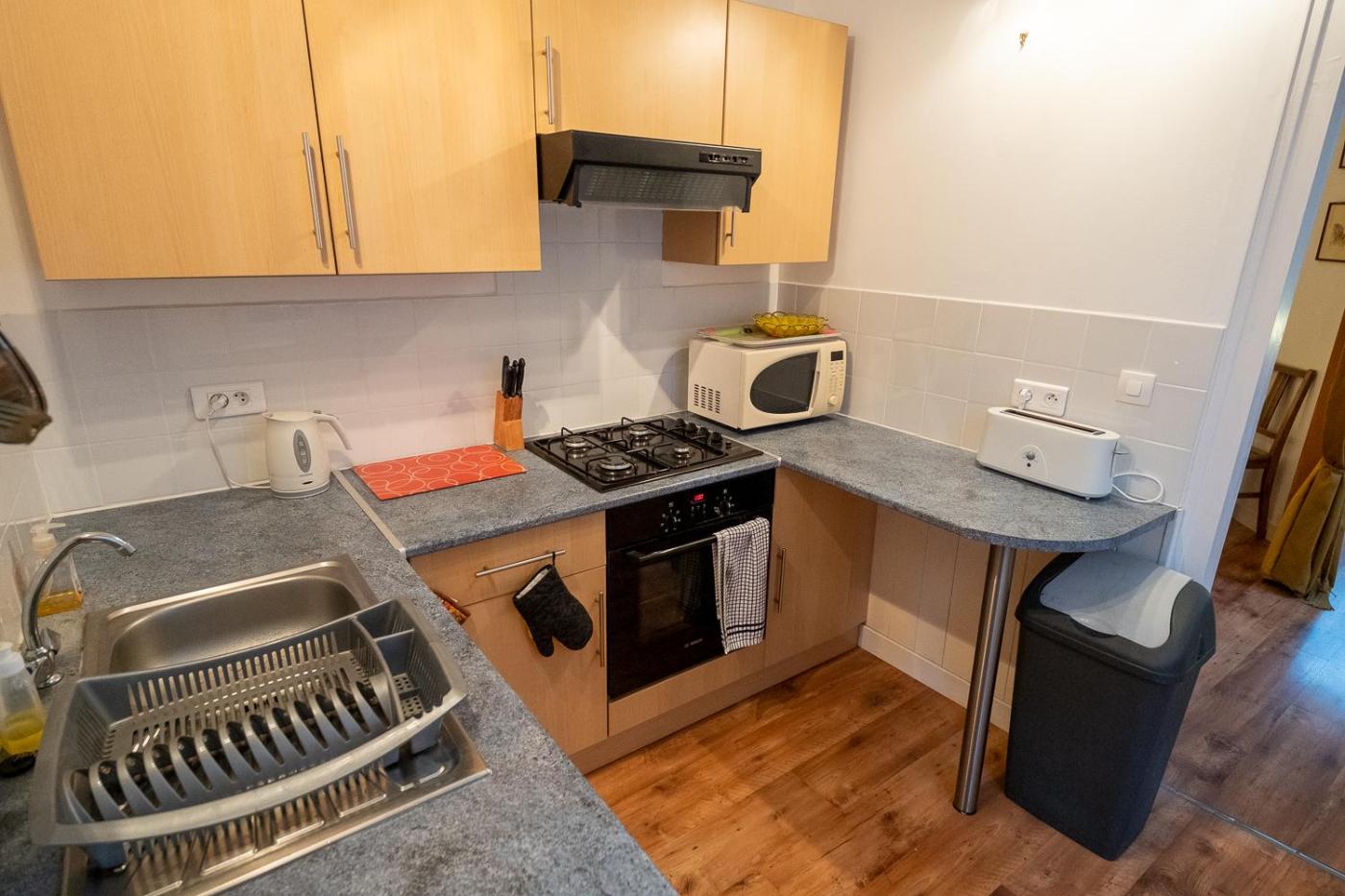 Appartement 1 Chambre. This apartment consists of 1 living room, 1 separate bedroom and 1 bathroom with a shower and a hairdryer. The well-fitted kitchen features a refrigerator, kitchenware, an oven and a microwave. The apartment provides a tea and coffee maker, a dining area, heating, a flat-screen TV, as well as city views. The unit offers 2 beds.