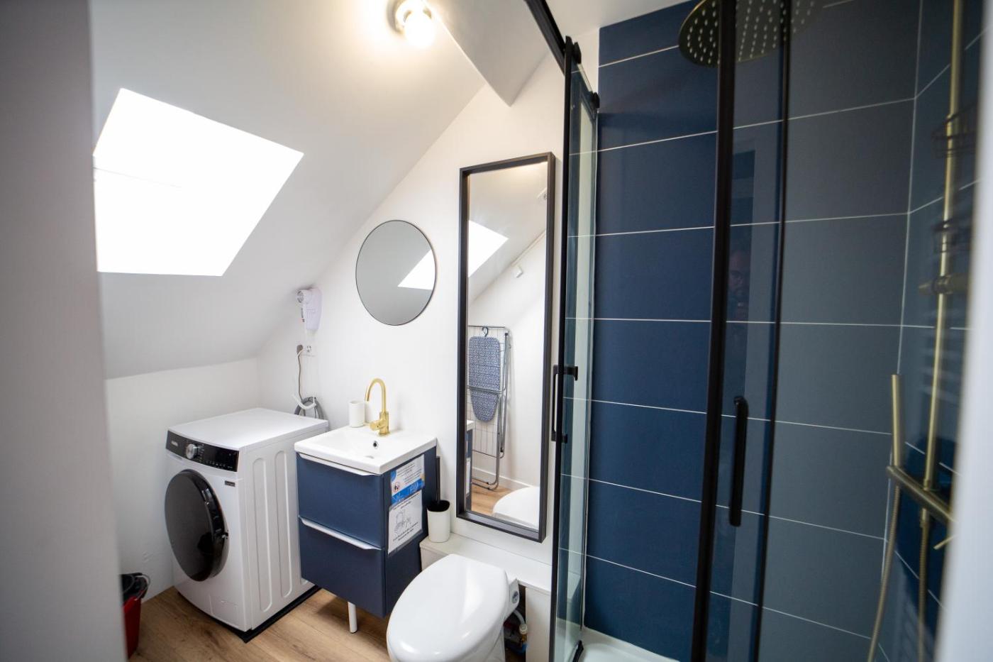 Appartement 1 Chambre. In the fully equipped kitchen, guests will find a stovetop, a refrigerator, kitchenware and a microwave. The apartment provides a flat-screen TV with streaming services, a washing machine, a coffee machine, a seating area as well as city views. The unit offers 1 bed.
