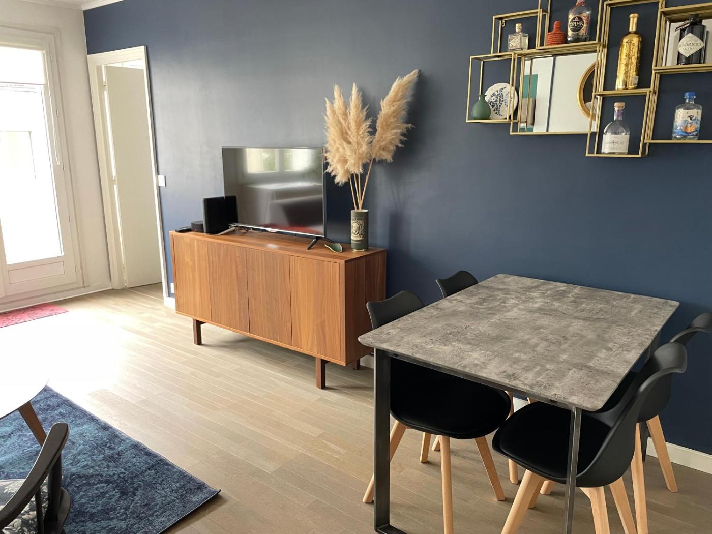Appartement 1 Chambre. This apartment features 1 living room, 1 separate bedroom and 1 bathroom with a bath and a shower. In the kitchen, guests will find a stovetop, a refrigerator, a dishwasher and kitchenware. The apartment has parquet floors, a seating area with a flat-screen TV, a washing machine, a tea and coffee maker as well as a quiet street view. The unit has 1 bed.