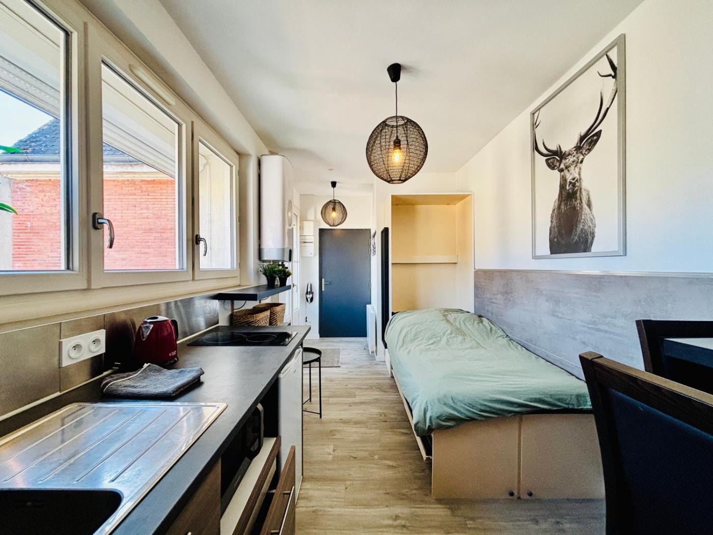 Studio Supérieur. The studio features a private bathroom, a washing machine, a private entrance, as well as a seating area with a flat-screen TV. In the kitchenette, guests will find a stovetop, a refrigerator, kitchenware and a microwave. The studio provides a tea and coffee maker, a dining area, parquet floors, a TV, as well as city views. The unit offers 1 bed.