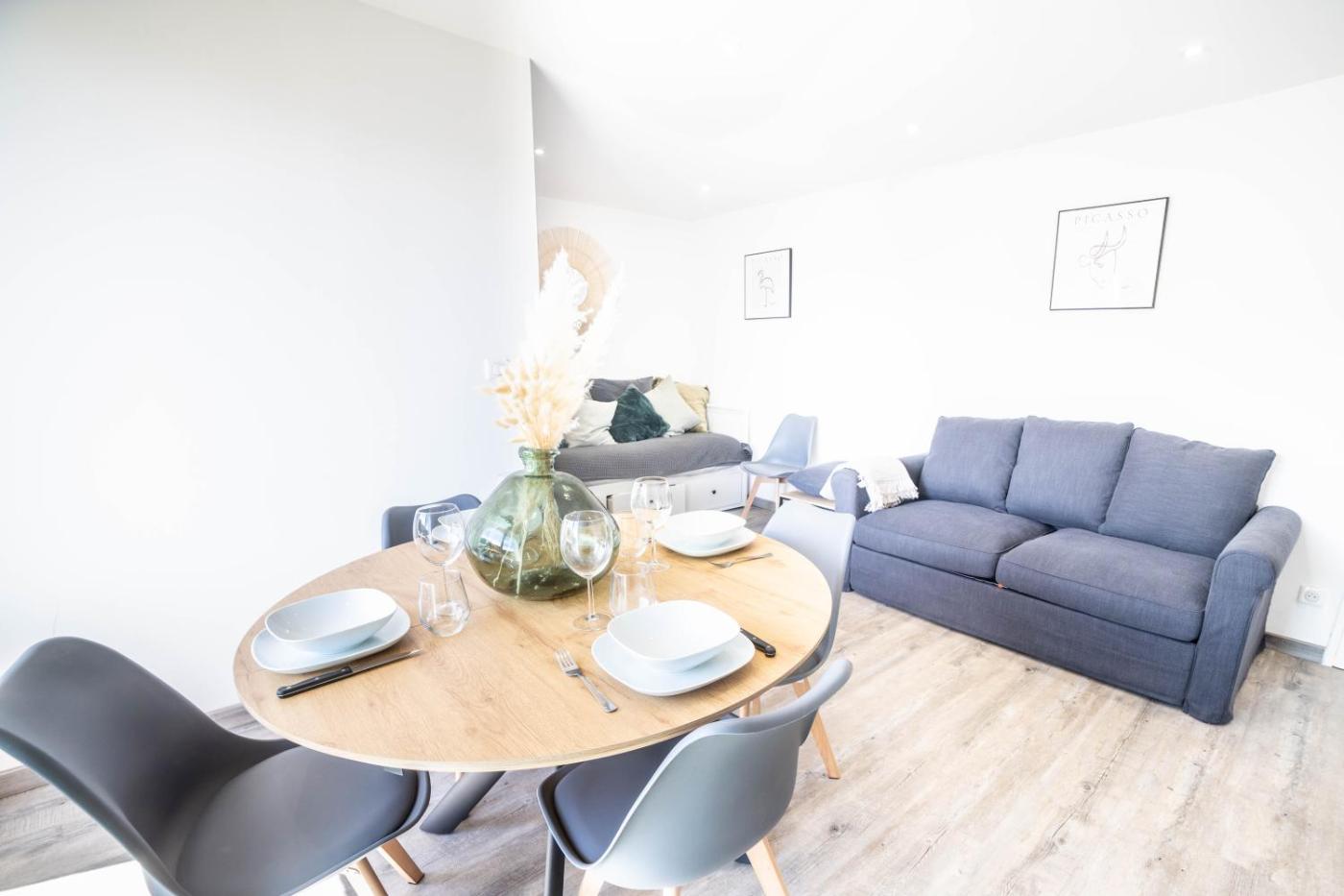 Appartement 1 Chambre. This air-conditioned apartment is comprised of 1 living room, 1 separate bedroom and 1 bathroom with a shower. The fully equipped kitchen features a stovetop, a refrigerator, an oven and a microwave. Featuring a balcony with garden views, this apartment also offers a washing machine and a flat-screen TV with cable channels. The unit offers 2 beds.
