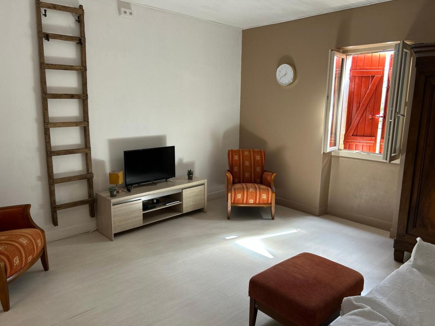 Appartement 1 Chambre. This apartments standout feature is the fireplace. This spacious apartment is comprised of 1 living room, 1 separate bedroom and 1 bathroom with a shower. In the kitchen, guests will find a refrigerator, a dishwasher, kitchenware and an oven. Featuring a terrace with garden views, this apartment also offers a washing machine and a TV. The unit offers 2 beds.