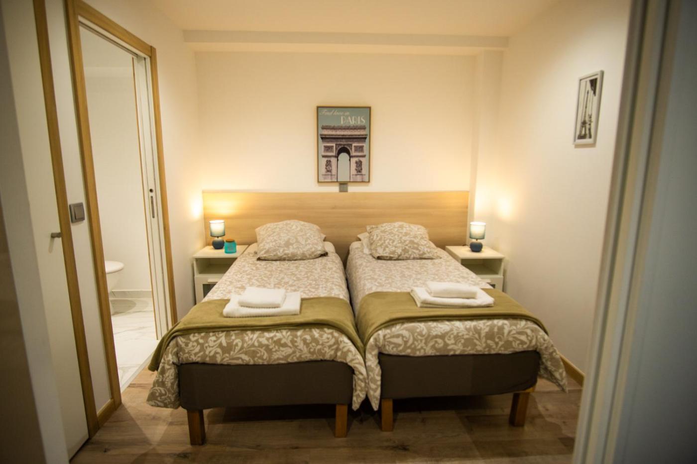 Appartement 1 Chambre. Boasting a private entrance, this air-conditioned apartment comes with a kitchen, 1 bedroom and 1 bathroom with a shower and a hairdryer. Meals can be prepared in the kitchen, which features a stovetop, a refrigerator, kitchenware and a microwave. The apartment features a tea and coffee maker, a dining area, a wardrobe, a sofa and a flat-screen TV. The unit has 2 beds.