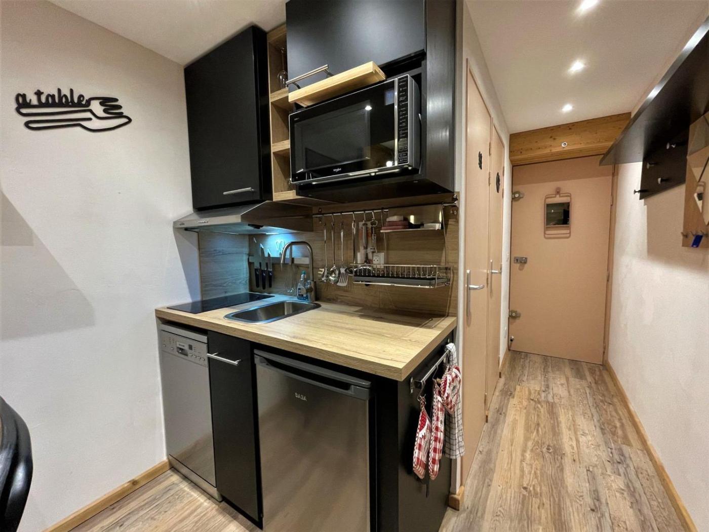Voir le prixPhotos Studio cabine rénové, 4 pers, pied des pistes, balcon sud, près commerces et remontées. - FR-1-452-376