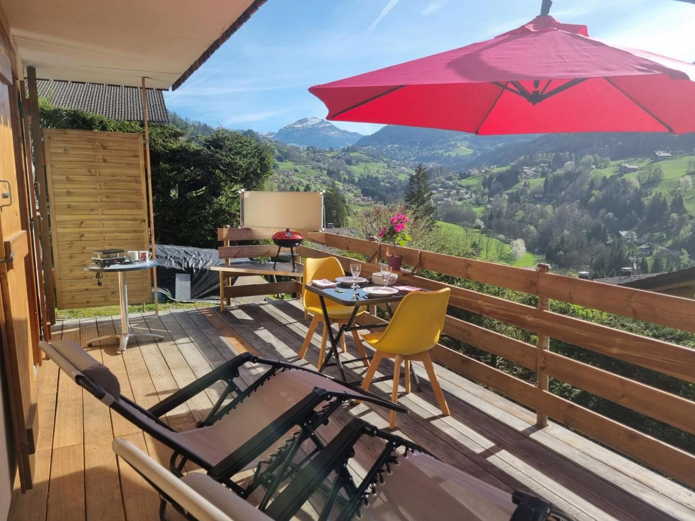 Voir le prixPhotos Private terrace, cosy appartement, ideal couple, bbq,relax, welcome, near La Clusaz, Grand Bornand, Annecy and lake, many sports and entertainment activities summer and winter