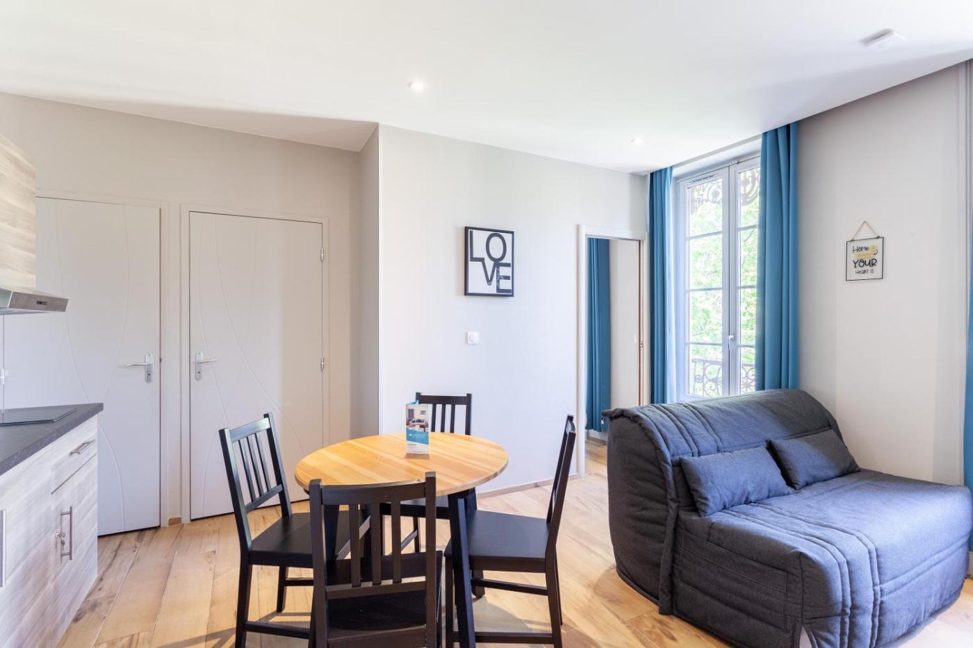Appartement 1 Chambre. This apartment is comprised of 1 living room, 1 separate bedroom and 1 bathroom with a shower and free toiletries. The well-equipped kitchen features a refrigerator, kitchenware, a microwave and a toaster. The apartment offers a washing machine, a coffee machine, a wardrobe, a sofa, as well as a TV. The unit offers 2 beds.