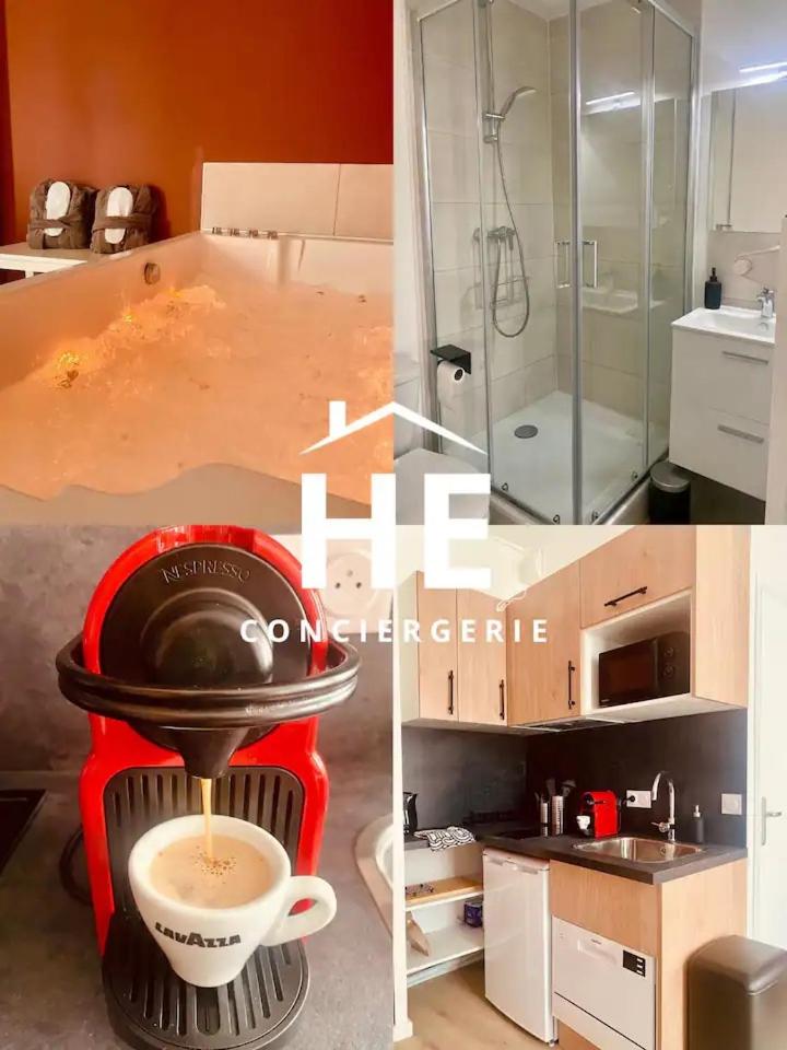 Appartement 1 Chambre. This apartments standout features are the hot tub and spa bath. The apartment has 1 bedroom and 1 bathroom with a shower and free toiletries. In the well-fitted kitchenette, guests will find a stovetop, a refrigerator, a dishwasher and kitchenware. The apartment offers a flat-screen TV with streaming services, a washing machine, a tea and coffee maker, a dining area as well as a quiet street view. The unit has 1 bed.