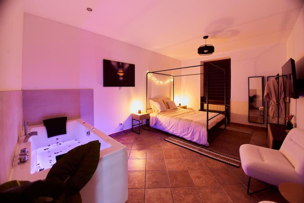 Appartement 1 Chambre. Guests will have a special experience as this apartment features a hot tub. The well-equipped kitchen features a stovetop, a refrigerator, a dishwasher and kitchenware. The apartment offers a washing machine, a private entrance, a tea and coffee maker as well as a terrace with garden views. The unit offers 1 bed.