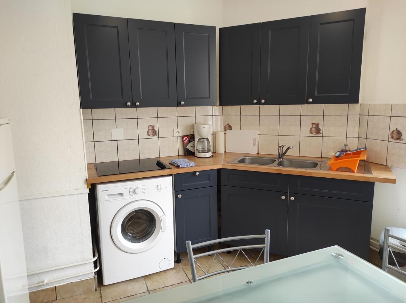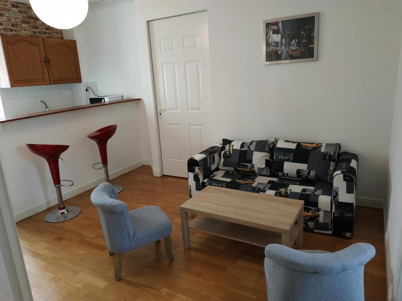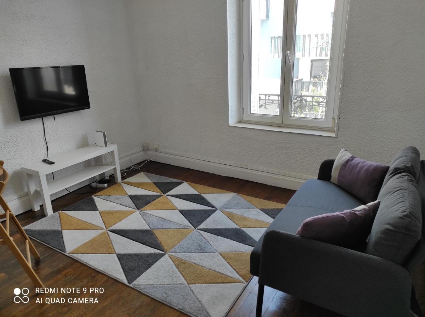 Appartement 2 Chambres. Boasting a private entrance, this apartment comes with 2 living rooms, 2 separate bedrooms and 1 bathroom with a shower and a hairdryer. Guests can make meals in the kitchen that features a stovetop, a refrigerator, kitchenware and an oven. The apartment has parquet floors, a seating area with a flat-screen TV, a washing machine, a coffee machine, as well as a dining area. The unit has 2 beds.