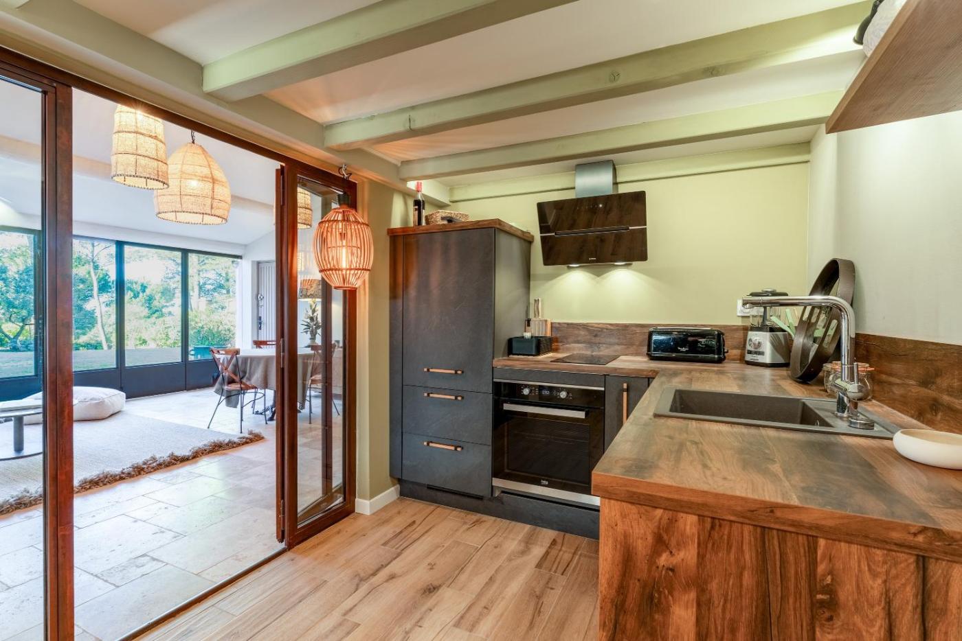 Maison 1 Chambre. This holiday home features a fireplace. Boasting a private entrance, this air-conditioned holiday home features 1 living room, 1 separate bedroom and 1 bathroom with a bath and a shower. Meals can be prepared in the kitchen, which has a dishwasher, kitchenware, an oven and a toaster. Featuring a terrace with garden views, this holiday home also features a washing machine and a TV with streaming services. The unit has 2 beds.