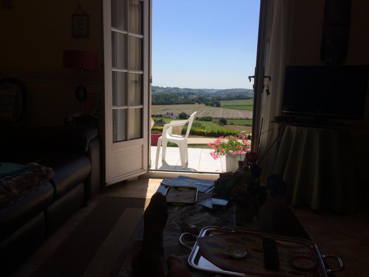 Chambre Lits Jumeaux Spacieuse. The twin room features a tea and coffee maker, a dining area, a balcony with garden views as well as a shared bathroom boasting a hairdryer. The unit has 2 beds. ;