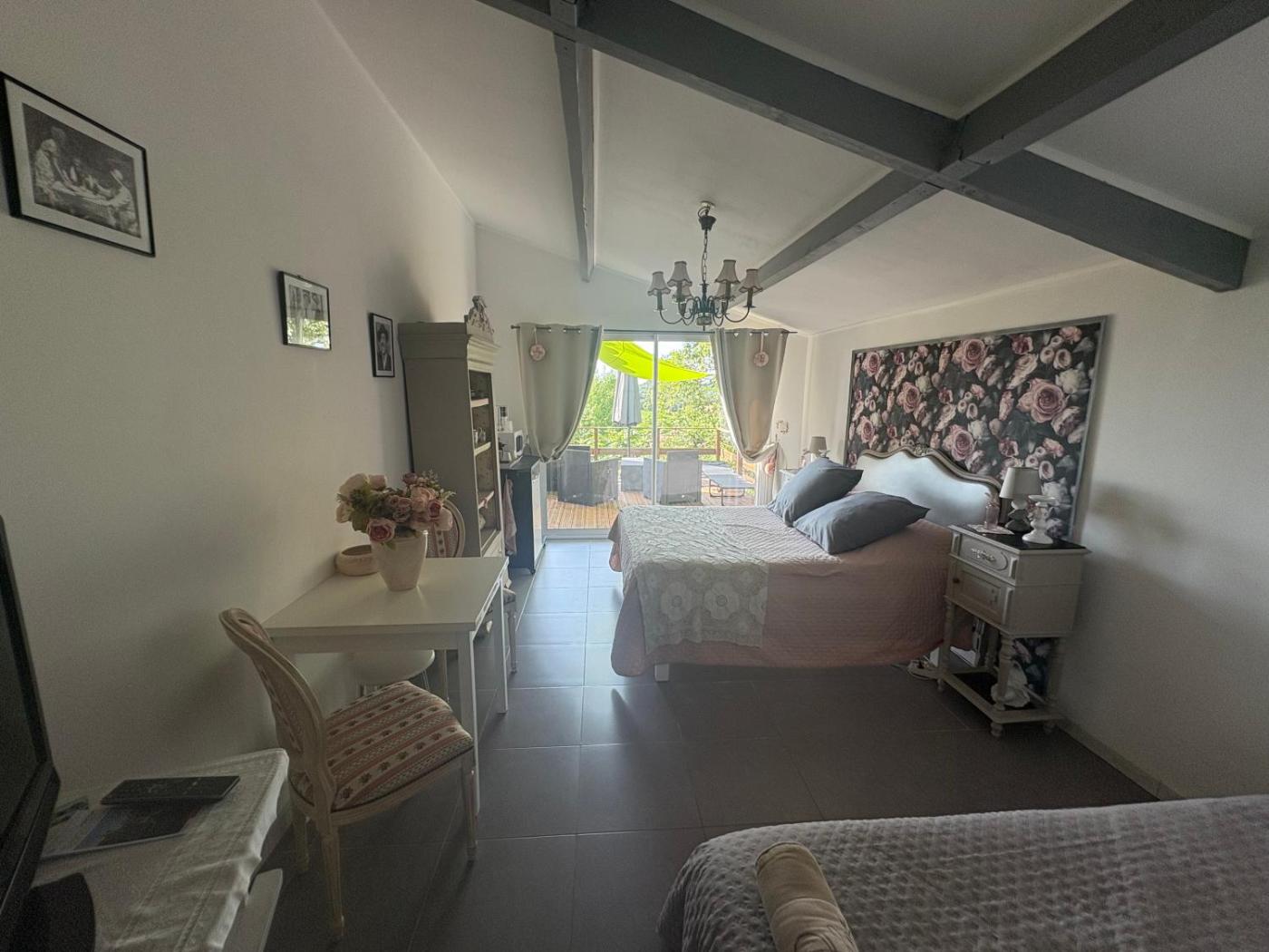 Suite - Vue sur Piscine. This suite features a pool with a view. Boasting a private entrance, this air-conditioned suite features 1 living room, 1 separate bedroom and 1 bathroom with a shower and a hairdryer. Featuring a terrace with garden views, this suite also features soundproof walls and a flat-screen TV with satellite channels. The unit has 2 beds.