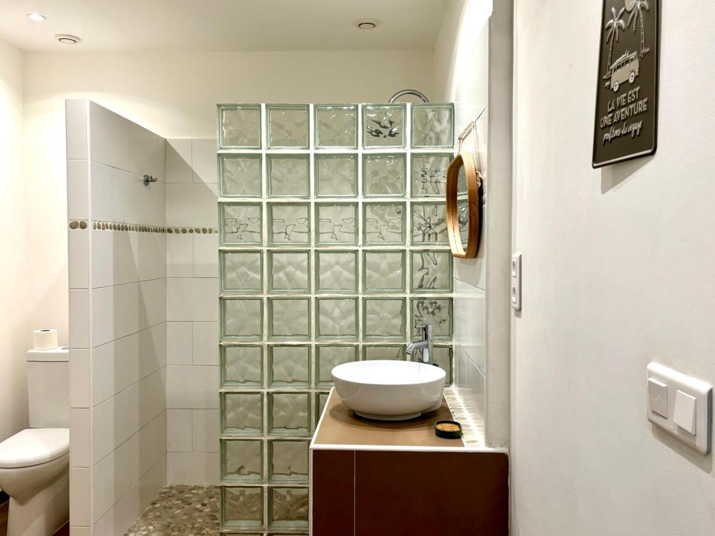 Appartement 1 Chambre - Côté Mer. Featuring 1 bedroom, this apartment offers 1 bathroom with a hairdryer, a seating area and terraceyou can relax. Meals can be prepared in the kitchenette, which comes with a refrigerator, an oven, a microwave and a toaster. The air-conditioned apartment provides a TV, a washing machine, a coffee machine, a dining area as well as sea views. The unit has 2 beds.