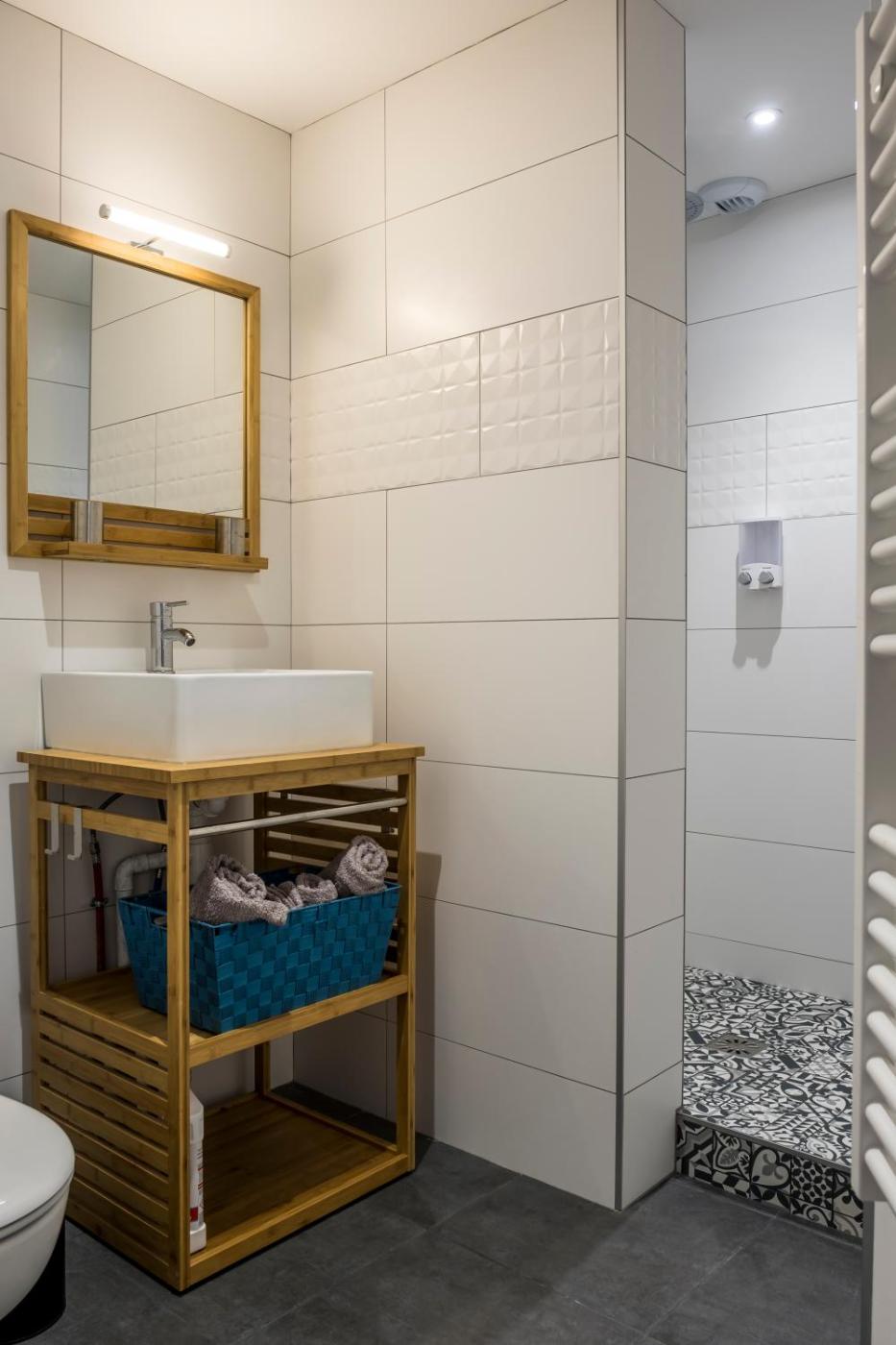 Cet appartement se compose de 1 chambre, dun salon, dune cuisine entièrement équipée avec un réfrigérateur et une machine à café, ainsi que de 1 salle de bains avec une douche et des articles de toilette gratuits. Des serviettes et du linge de lit sont à disposition.