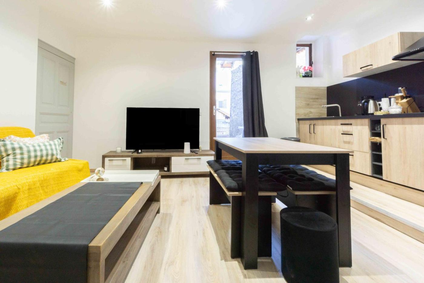 Appartement avec Terrasse. Featuring a private entrance, this apartment is comprised of 1 living room, 1 separate bedroom and 1 bathroom with a shower and a hairdryer. Guests will find kitchenware, an oven, a microwave and a toaster in the well-equipped kitchen. The apartment also has a barbecue. Boasting a terrace with mountain views, this apartment also offers a coffee machine and a TV with streaming services. The unit offers 3 beds.