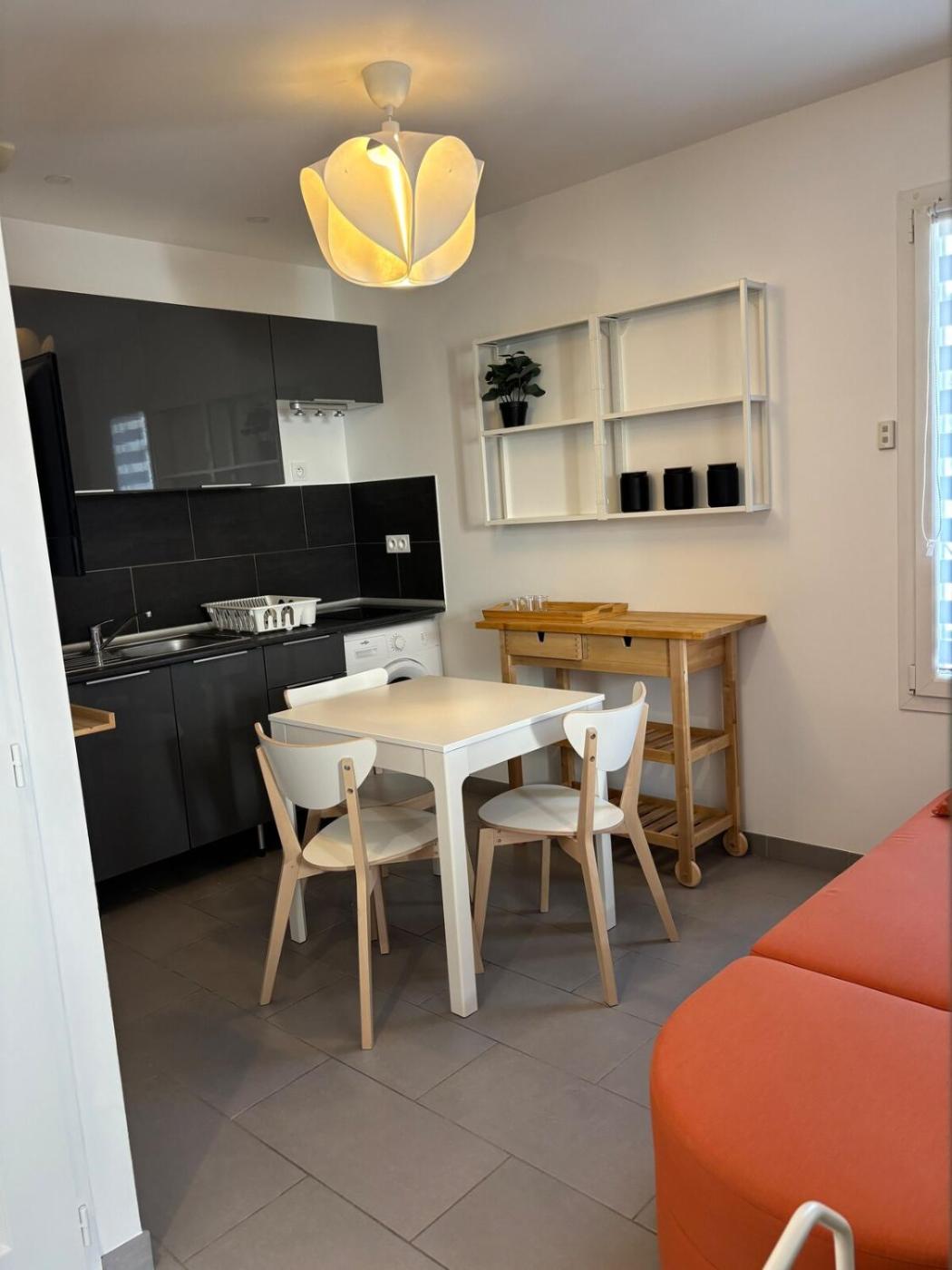 Appartement 1 Chambre. The apartment has 1 bedroom and 1 bathroom with a shower and free toiletries. In the kitchenette, guests will find a stovetop, a refrigerator, kitchenware and a microwave. Boasting an outdoor dining area, this apartment also offers a washing machine, a private entrance and a flat-screen TV. The unit has 1 bed.