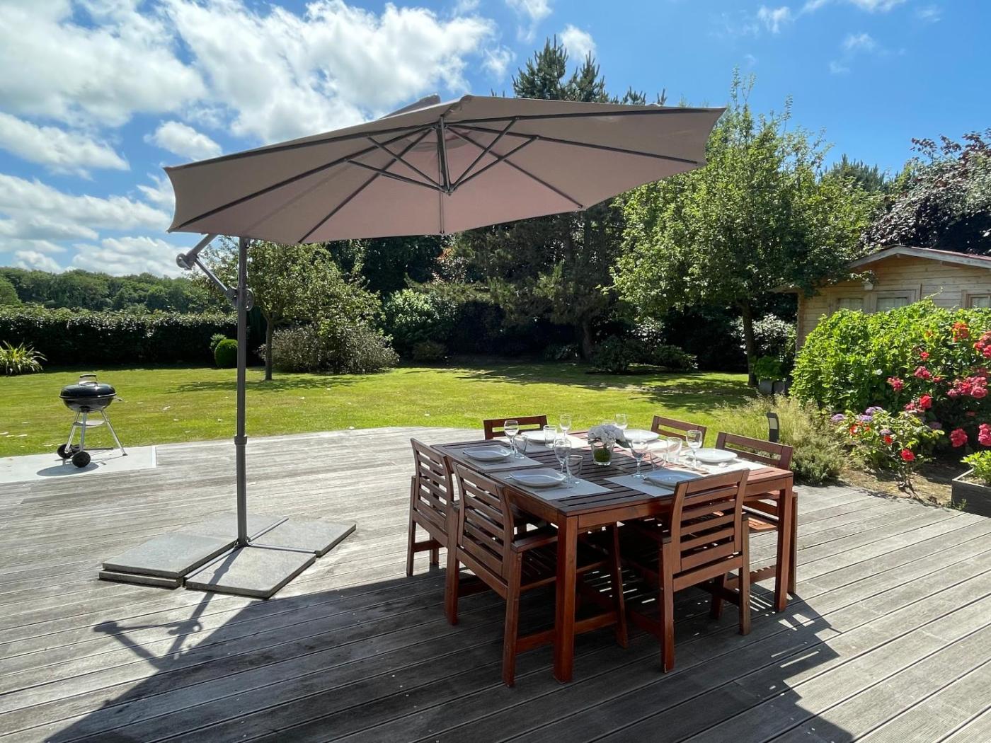 Maison 3 Chambres. Guests will have a special experience as this holiday home offers a fireplace. This spacious holiday home is comprised of 1 living room, 3 separate bedrooms and 2 bathrooms with a bath and a shower. Guests will find a stovetop, a refrigerator, a dishwasher and kitchenware in the fully equipped kitchen. The holiday home also has a barbecue. The holiday home features a washing machine, a private entrance, a tea and coffee maker as well as a terrace with garden views. The unit offers 5 beds.