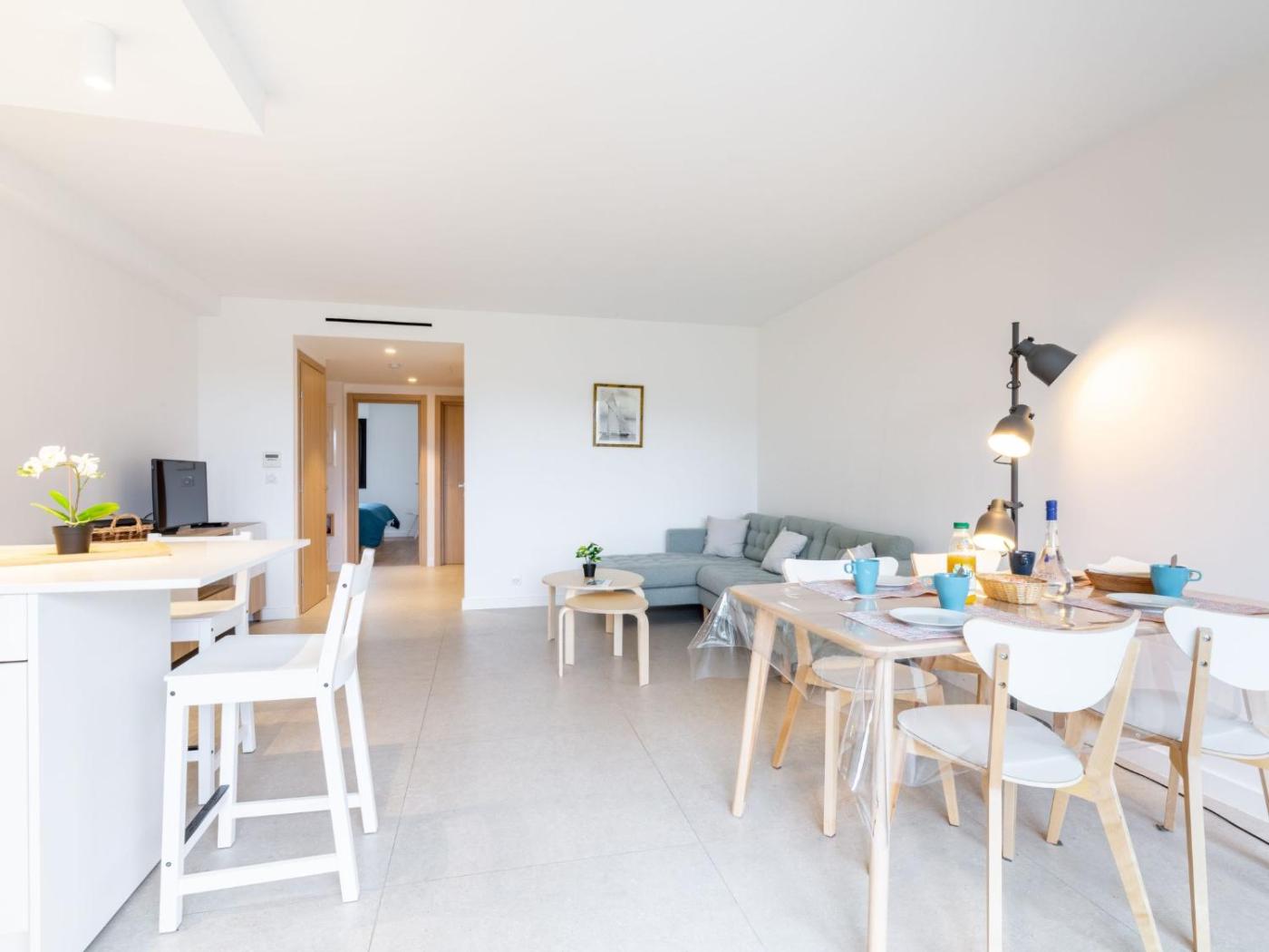 Cet appartement avec climatisation se compose de 2 chambres séparées, dune cuisine entièrement équipée avec un réfrigérateur et un lave-vaisselle, ainsi que de 1 salle de bains. Une télévision est à disposition.
