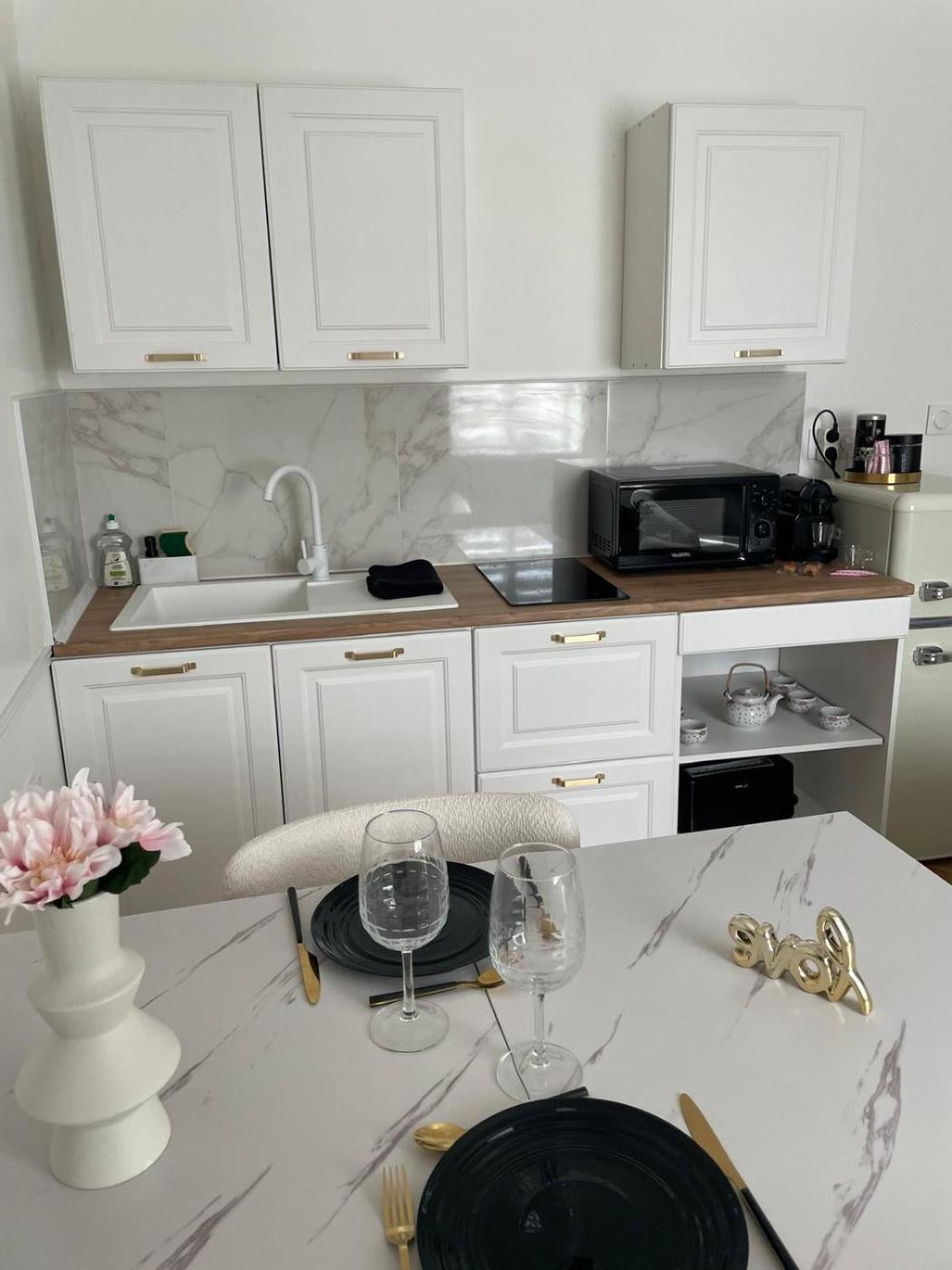 Appartement 1 Chambre. This apartments special feature is the spa bath. This apartment consists of a kitchen, a seating area, 1 separate bedroom and 1 bathroom with a shower and a hairdryer. The well-fitted kitchen features a stovetop, a refrigerator, kitchenware and a microwave. The apartment provides a flat-screen TV, a coffee machine, a dining area and heating. The unit offers 1 bed.