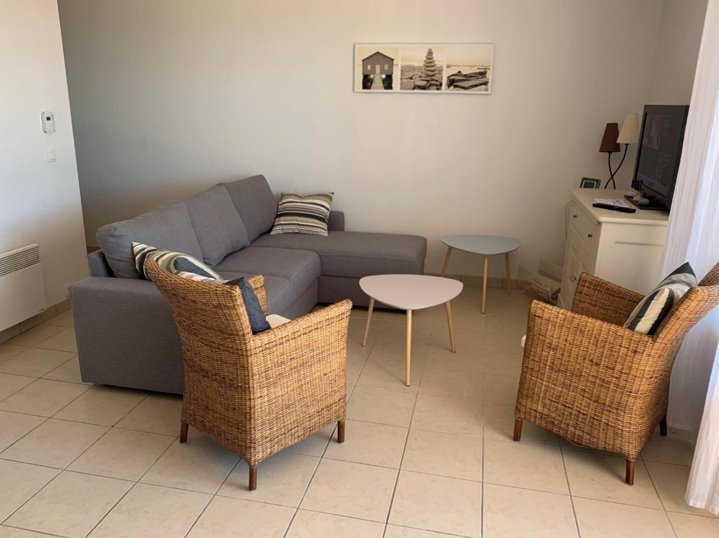 Appartement 2 Chambres - Côté Océan. This spacious apartment comes with 2 bedrooms, kitchen, a terrace and 1 bathroom with a bath. Guests can make meals in the kitchen that features a refrigerator, a dishwasher, kitchenware and an oven. The apartment features a washing machine, a tea and coffee maker, heating, a TV, as well as sea views. The unit has 3 beds.