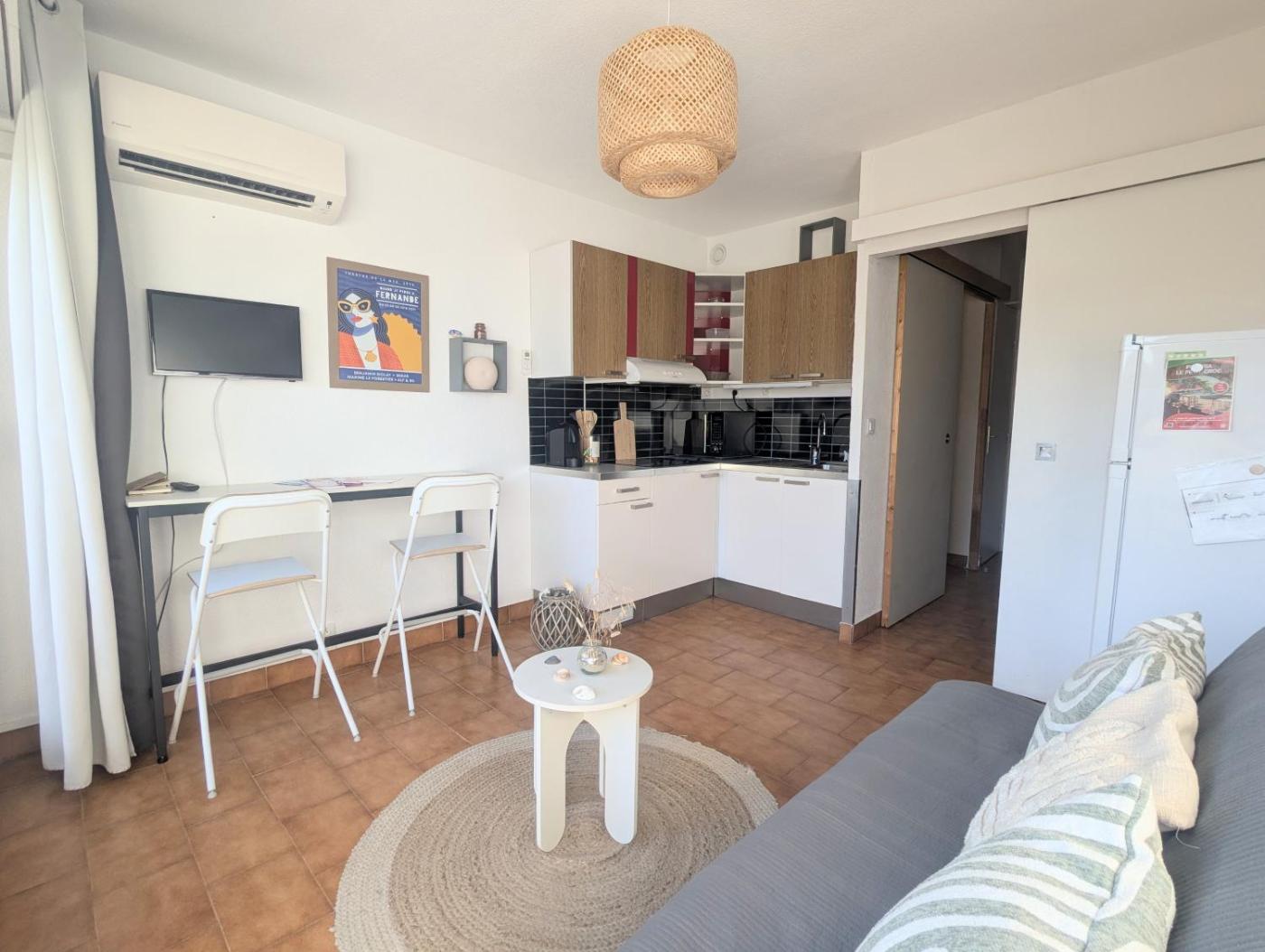 Studio cabine Coté Marina, terrasse et clim, plage à pied
