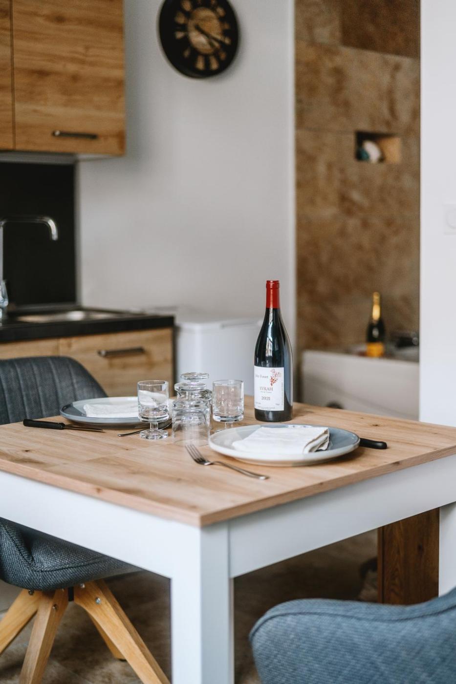 Appartement 1 Chambre. The hot tub and spa bath are the standout features of this apartment. The apartment has 1 bedroom and 1 bathroom with a shower and free toiletries. Meals can be prepared in the well-fitted kitchen, which has a stovetop, a refrigerator, a dishwasher and kitchenware. The apartment features a washing machine, a coffee machine, a dining area, a tiled floor and a flat-screen TV with streaming services. The unit has 1 bed. ;